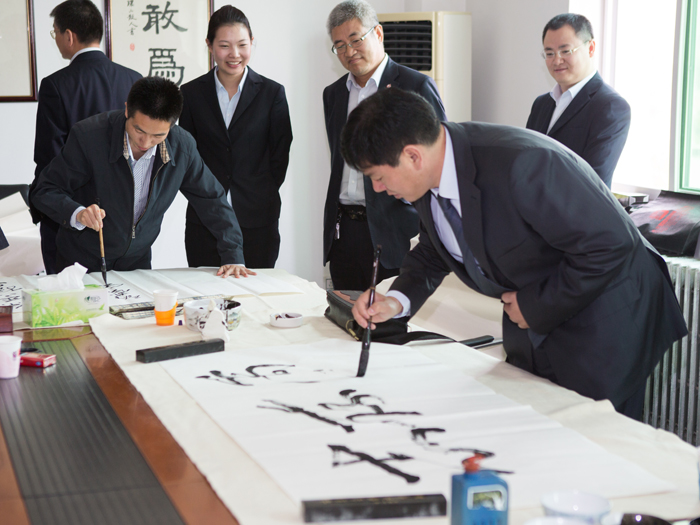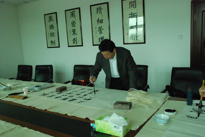 为弘扬传统文化,丰富员工业余生活,5月6日上午,乐鱼手机官方网站有限公司举办了首届书画艺术学习交流活动。本次活动邀请了中国书法家协会会员孟云飞博士、中国书法家协会理事张铜彦先生、中国书法家协会编辑出版委员会副主任王荣生教授、人民艺术家协会理事于瑛先生等国内知名书画大师,各位书画大师在活动现场进行了艺术创作表演,挥毫泼墨,交流技艺,为乐鱼手机官方网站有限公司留下了数十副墨宝,还对部分员工的书画作品进行了悉心指导。公司员工现场欣赏了书画大师的艺术创作,并聆听了有关书画艺术鉴赏知识的介绍,部分员工还在活动现场进行创作,听取书画大师的讲解示范和点评。