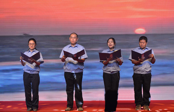 活动以集团公司百名员工共唱《我和我的祖国》快闪视频的播放开场,按“不忘初心担使命”、“勇立潮头搏激流”、“同心逐梦谱新篇”、“砥砺奋进铸辉煌”四个篇章依次展开。一首首满怀深情的赞歌重现伟大祖国浩瀚进程中的历史瞬间、描绘出辽阔土地上的锦绣山河、传递着中航建设人的自豪之情、展示出未来美好的幸福景象。一个个满怀深情的朗诵者相继登场,将中航建设锐意进取,志存高远的精神贯穿始终。演出中,乐鱼手机官方网站的发展成就得以展示,中航建设工作者的人文情怀得到抒发,台下观众沉浸在对中航建设的热爱和为祖国庆生的喜悦之情当中。