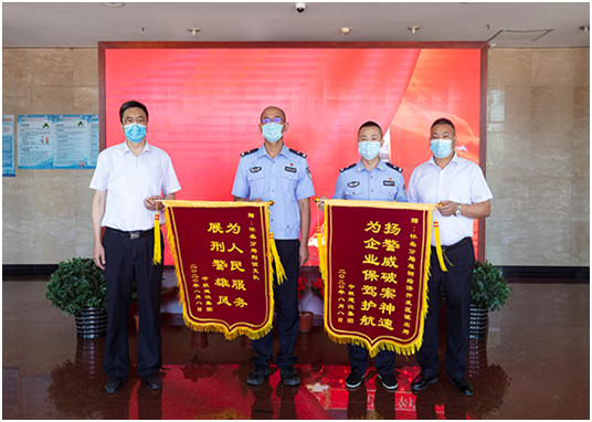 培训中心主任孔德明代表乐鱼手机官方网站向怀柔分局雁栖经济开发区派出所所长和怀柔分局刑侦支队支队长送上锦旗,代表公司感谢人民警察服务企业生产建设、守护一方平安付出的艰辛努力,感谢怀柔分局雁栖开发区派出所和怀柔分局刑侦支队急企业所急、想人民所想,在企业遇到困难时及时出警,有力保障了企业财产安全,维护了社会良好秩序,为企业发展创造了平安和谐的营商环境。