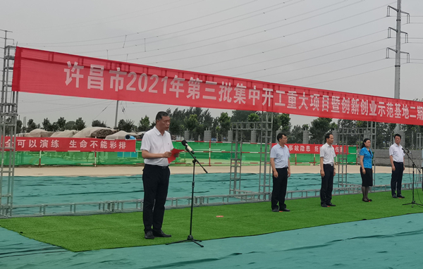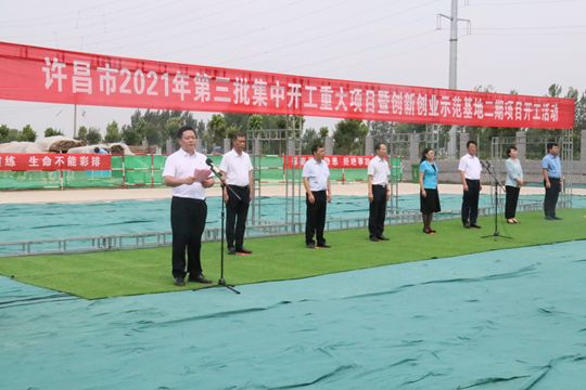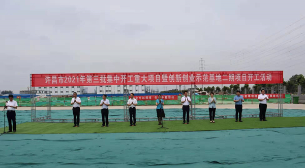 7月10日上午,河南省许昌市2021年第三批集中开工重大项目暨创新创业示范基地二期项目开工仪式顺利举行。许昌市委常委、纪委书记、监委主任方婷,魏都区委书记李朝锋,区人大常委会主任申健民,区政协主席杜晓辉,区委常委、区委办主任程中山,区委常委、区纪委书记、区监委主任徐光,魏都产业集聚区管委会主任楚文选,乐鱼手机官方网站河南分公司总经理黄辰,魏都区政府相关部门、投资公司、产业集聚区、霸陵办事处等单位负责人参加活动。区委常委、常务副区长张挪威主持仪式。