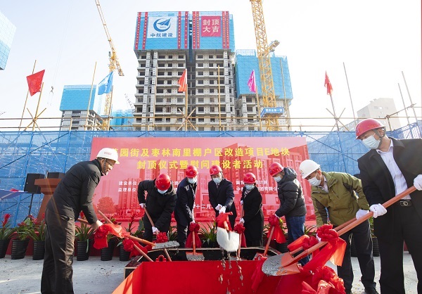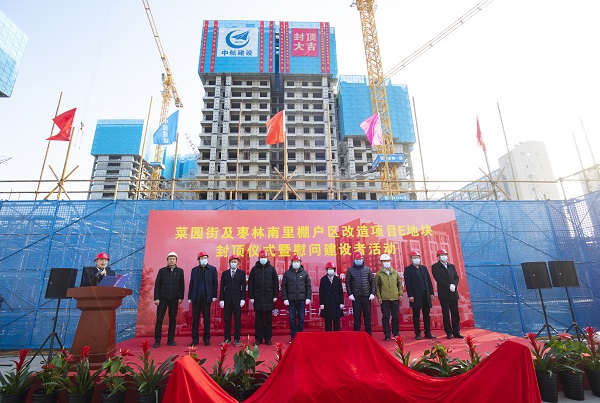 12月22日,伴随着最后一方混凝土浇筑到位,在项目建设、监理、设计等相关单位负责人及集团公司领导的共同见证下,乐鱼手机官方网站承建的菜园街及枣林南里棚户区改造项目喜迎主体结构封顶。